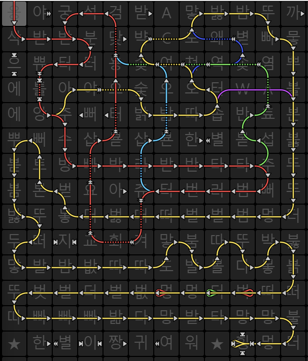 코드의 진행방향을 나타냈다. (https://yoo2001818.github.io/AheuiChem/ 사용)