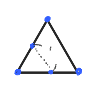 (부연 설명을 하자면, 삼각형의 세 꼭짓점에 3개의 점을 놓고, 두 변의 중점에 점을 두는 것)